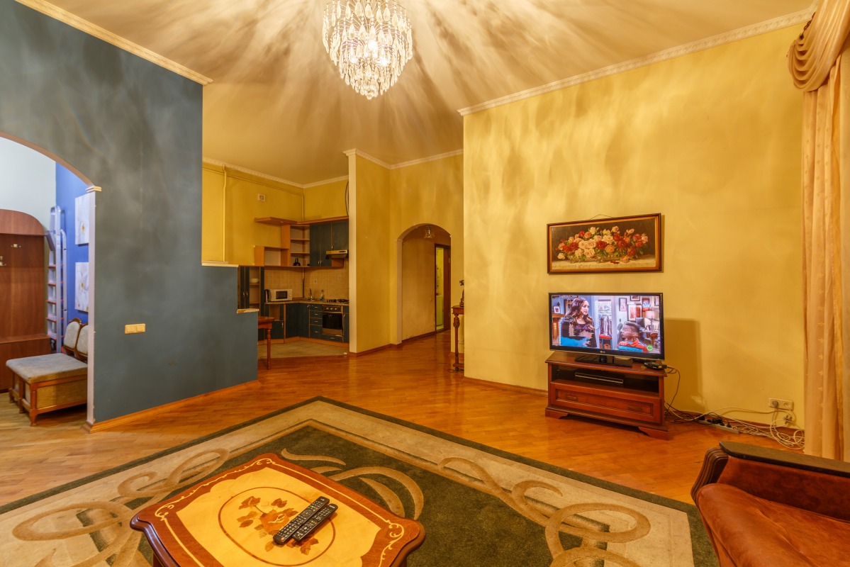 Convertible This nicely renovated and extremely spacious two bedroom apartment is located just a few minutes walk away from Kreschatik street and just steps away from some of the main attractions in Kyiv in the center such as the Independence Square.