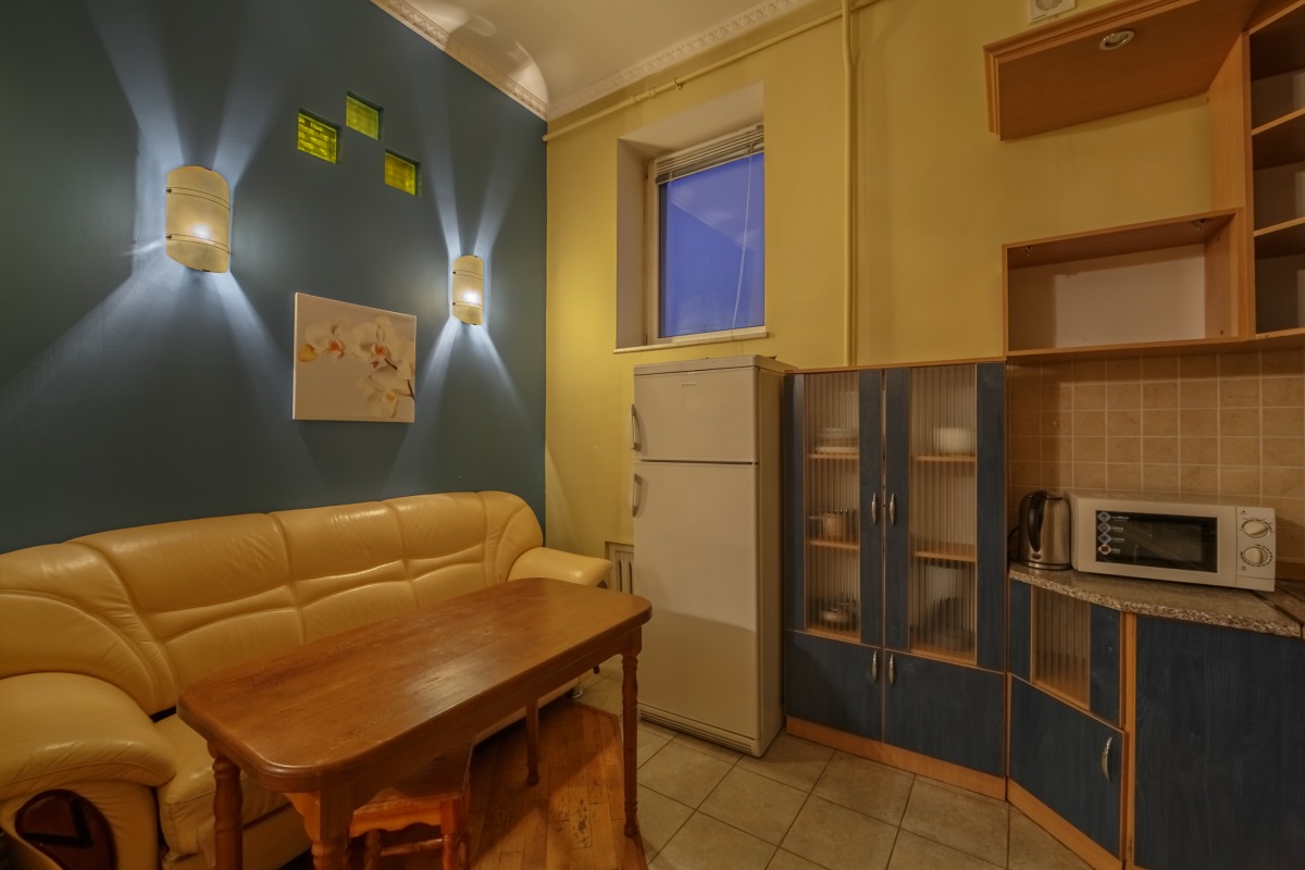Located on the 4th floor of a 5 storied building (with an elevator and coded door at common entrance) the apartment has absolutely one may require for a comfortable stay in Kiev, including large comfortable couches (convertible to full sized bed), 27 Inch TV with Cable (over 50 channels), DVD Player, High Speed Internet, queen sized beds in the bedroom, large wardrobe area, work station area for your laptop, large balcony overlooking an enclosed large yard and much more. This is a fantastic two bedroom option to consider for your next stay in Kiev.