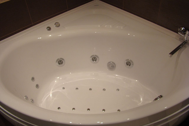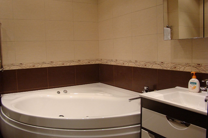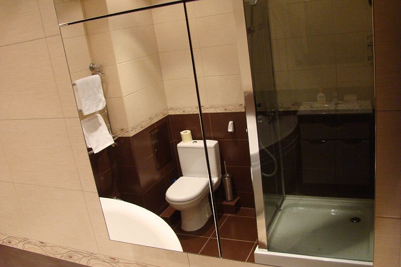 Spacious bathroom, with a hydro-massage shower and a washing machine.