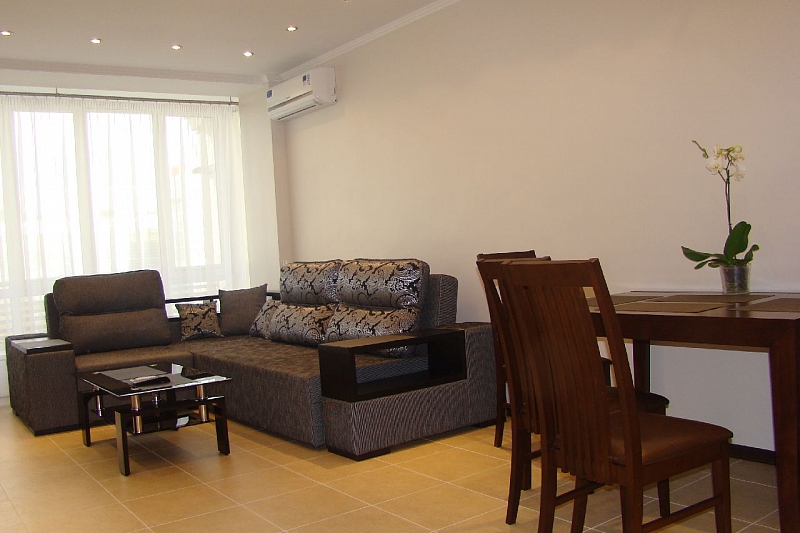 King This modern designed, one bedroom apartment is located in the centre of Kiev, directly on Krasnoarmyeskaya street within walking distance to famous Kreshatik street. Other attractions such as Opera Theatre and Olimpiysliy Stadium are just short stroll away.
