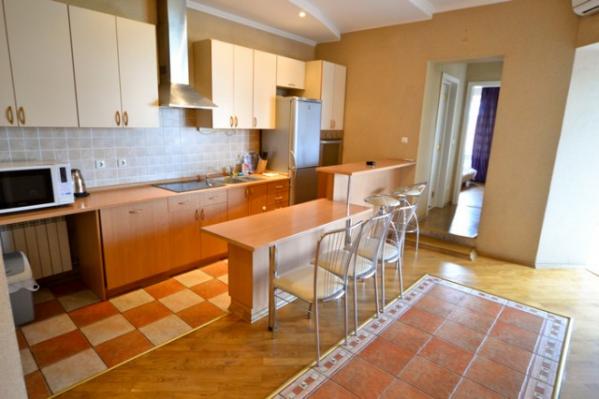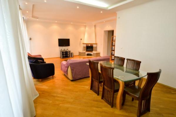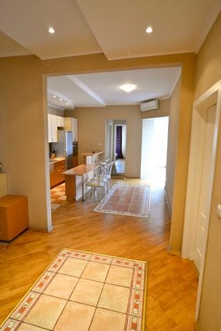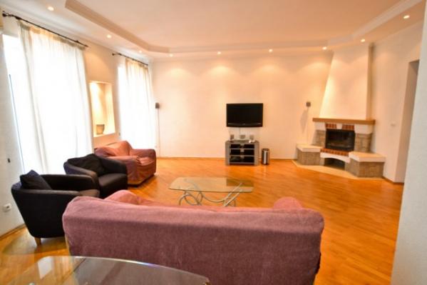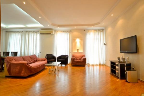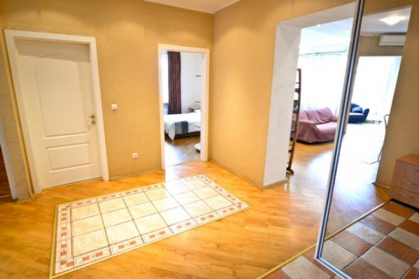 This absolutely magnificent three bedroom apartment is located in the prime center of Kiev – just a short walk away from the main street of Kreschatik and next to some of the hippest and trendiest restaurants and night clubs that Kiev has to offer. Fully renovated, the apartment consists of a total of four rooms and comes equipped with two full bedrooms. Situated on the 5th floor with elevator, the apartment is fully equipped with everything needed for a comfortable Kiev stay including a large living room with large couch set (couch convertible into full sized bed), 27” TV with Cable (over 75 channels), DVD/CD Players, Home Theater Surround Sound, High Speed Internet, two full bedrooms with queen sized beds, fireplace (not functional), laptop work station area, large wardrobe areas, additional TV in the bedroom for your viewing pleasure, enclosed patio (separate room) with great city views and an additional couch set (couch converts into an additional single sleeper for a child or a guest), two full bathrooms with a shower cabin, Jacuzzi, bath tub, washing machine, 3 Air Conditioner units, fully equipped kitchen with dining area for six, balcony and much more.