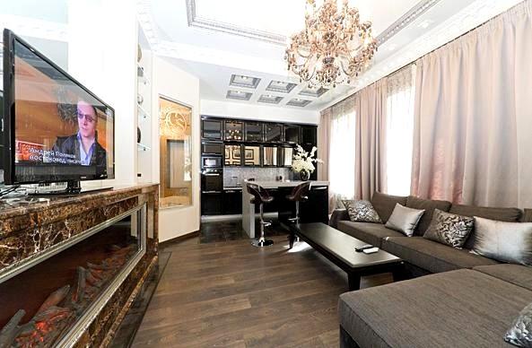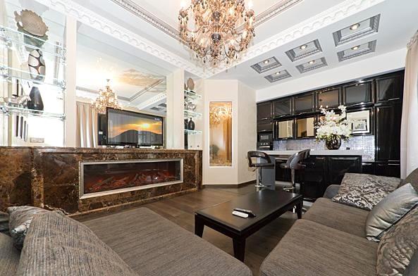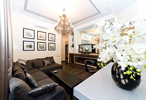 Convertible This ultra luxurious and stylish one-bedroom apartment is located in the absolute heart of Kiev, directly next to the main street of Kreschatik and just five minute walk to the Independence square. Dozens of cafes, nightclubs and restaurants are located all around along with all downtown landmarks. The apartment is absolutely one of a kind and is located on the 2nd floor of a building with elevator and door coded common entrance.