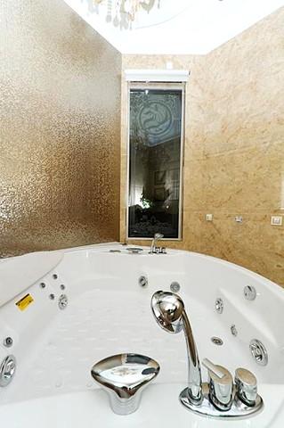This is one of the nicest one bedroom to consider for your next Kiev apartment stay. Features a sectional couch (convertible to full sized bed), 42 Inch TV with cable (over 100 channels), High Speed Internet (Wi Fi) and an Air Conditioner. Features a queen sized bed, additional LCD TV for your viewing pleasure and an additional Air Conditioner. Fully equipped with everything required for meal preparation, counter top seating for up to four people and a microwave. Features a round Jacuzzi, shower cabin, washing machine and fully functional Sauna.