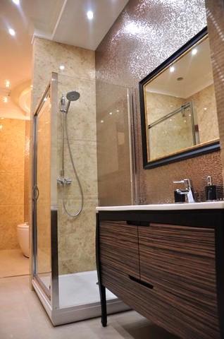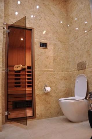The interior design was done by a famous local architect and the apartment features a spacious living room with sectional couch (convertible to full sized bed), decorative fireplace, coffee table, 42 Inch LCD TV, High Speed Internet (Wi Fi), fully private bedroom with queen sized bed, additional 32 Inch LCD TV for your viewing pleasure, fully equipped kitchen with dining room area for up to four people, microwave, spacious bathroom with Jacuzzi suitable for two people, shower cabin, Sauna, washing machine and much more.
