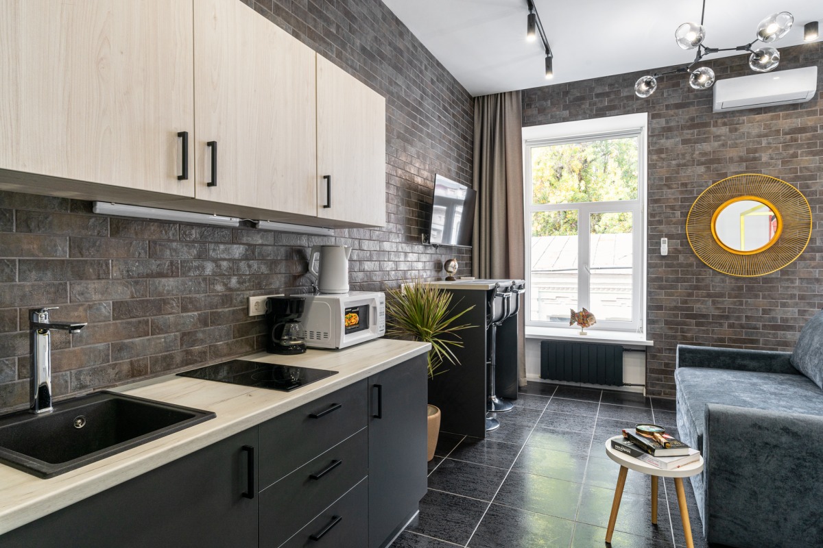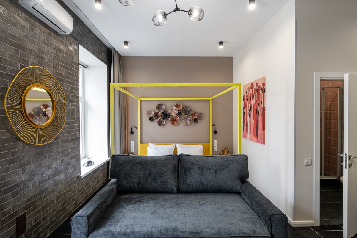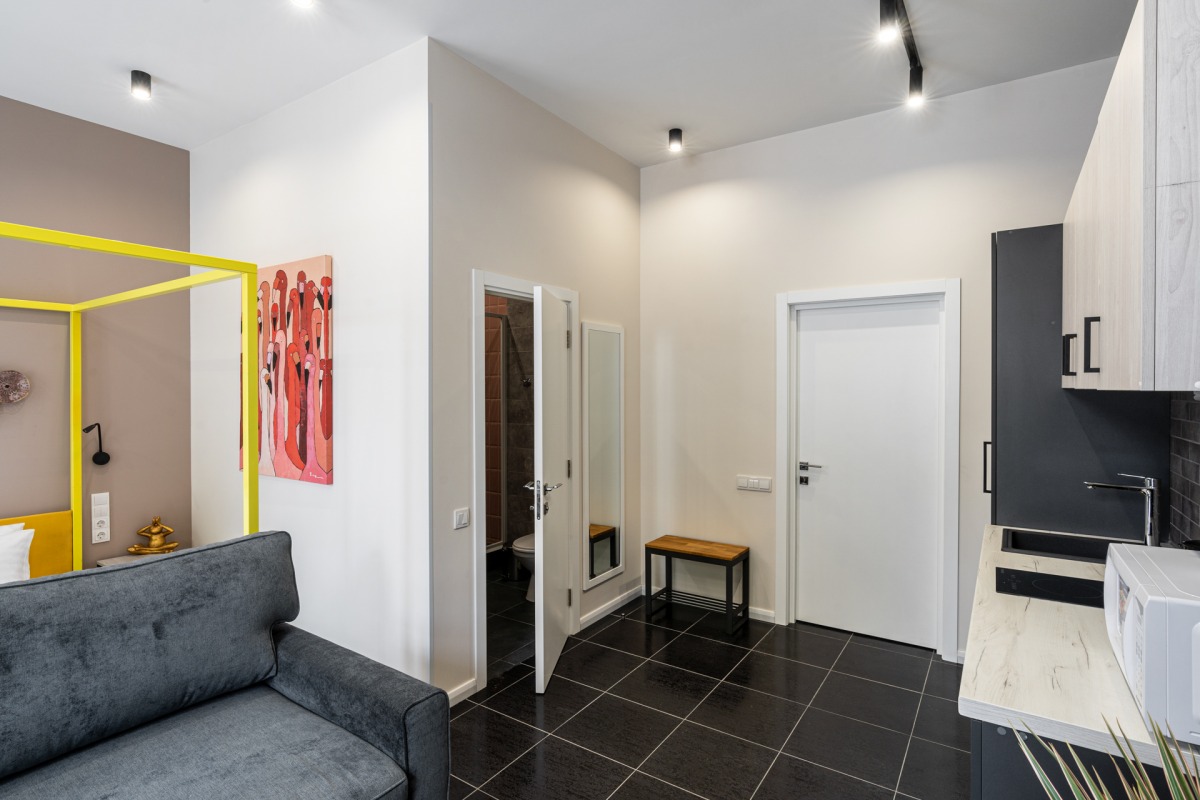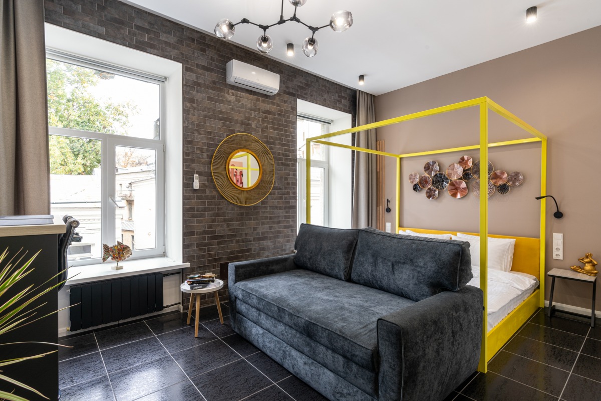 King This extra large loft style studio suite has been created for those who prefer total luxury with every single detail thought out for your convenience. It is also ideal for those that prefer privacy, want to relax from the busy city hustle and bustle and enjoy highest quality of comfort – all in the most central location of Kyiv.