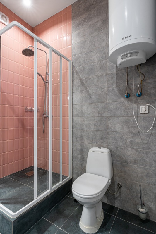 The unit includes fastest Wi Fi possible in residential Kyiv (up to 200 mbps), safe for your valuables and washing machine in the common area. The apartment also features a French balcony with street overview.