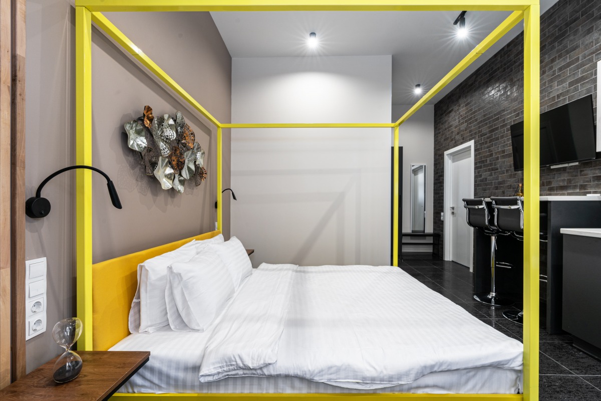 King This loft style studio suite has been created for those who prefer total luxury with every single detail thought out for your convenience. It is also ideal for those that prefer privacy, want to relax from the busy city hustle and bustle and enjoy highest quality of comfort – all in the most central location of Kyiv.