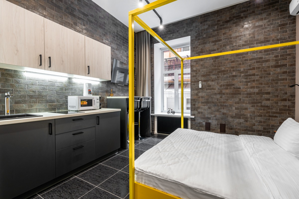 This loft style studio suite has been created for those who prefer total luxury with every single detail thought out for your convenience. It is also ideal for those that prefer privacy, want to relax from the busy city hustle and bustle and enjoy highest quality of comfort – all in the most central location of Kyiv.