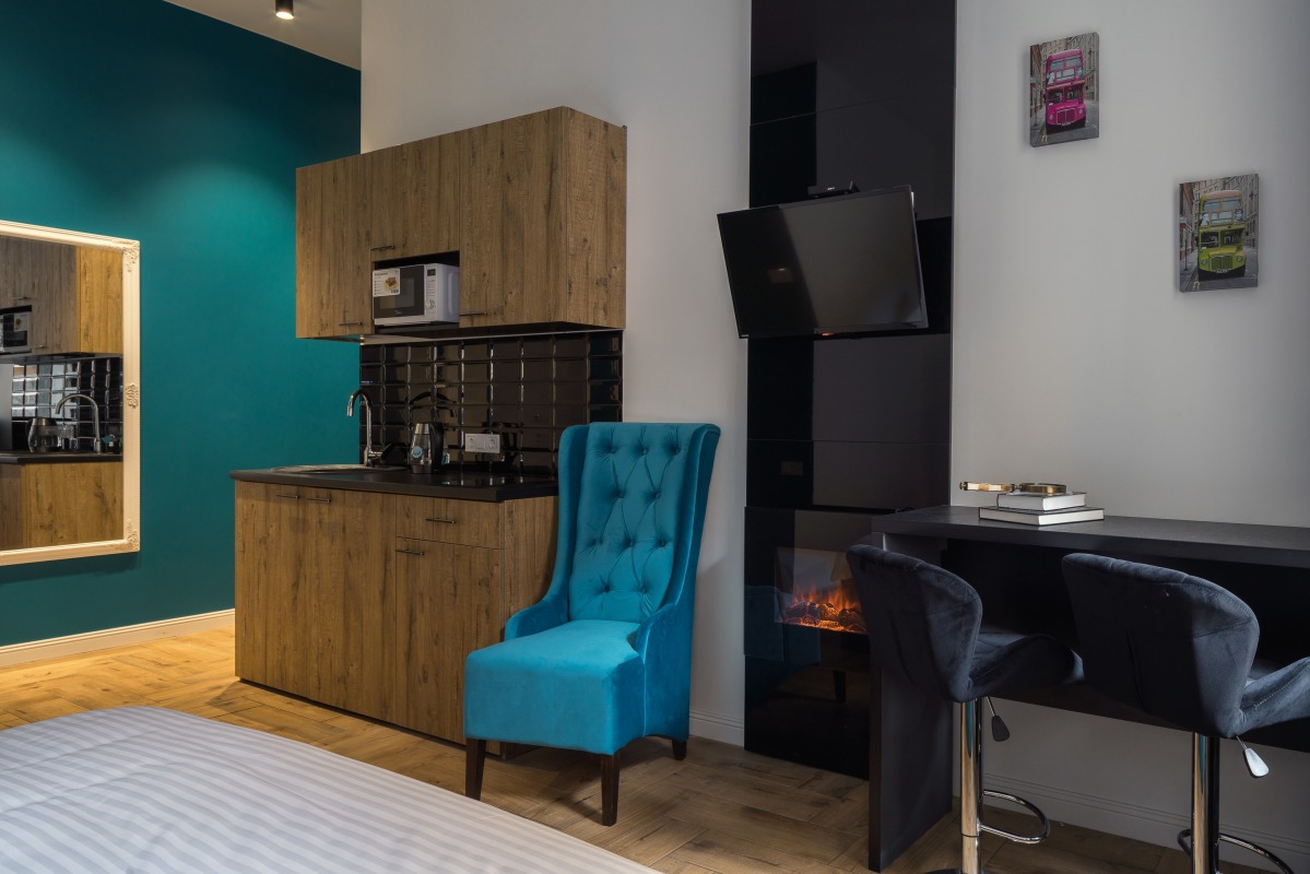 King This brand new and luxurious studio has been created for those who prefer total luxury with every single detail thought out for your convenience. It is also ideal for those who prefer privacy, want to relax from the busy city hustle and bustle and enjoy highest quality of comfort – all in the most central location of Kyiv.