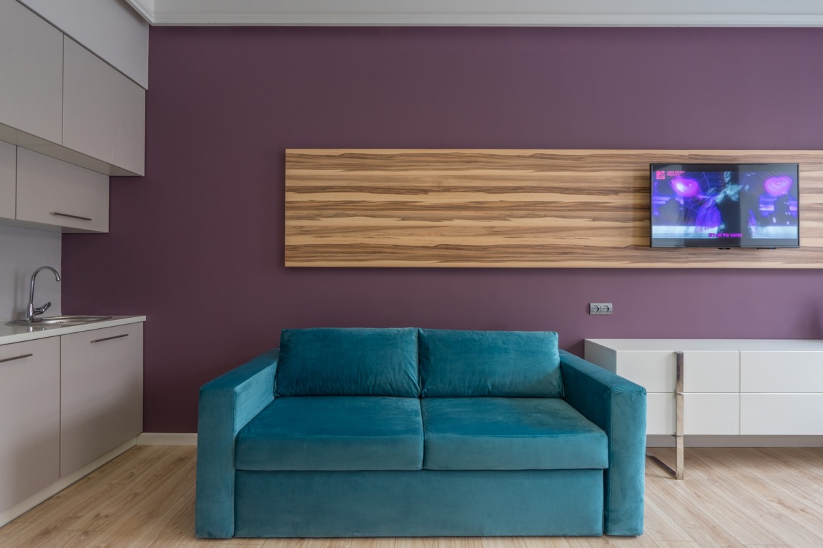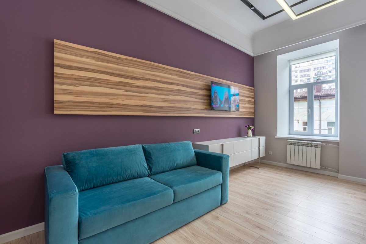 The apartment features a total of two rooms, yet each room containing a queen sized bed. Living room / master bedroom room features a queen king sized bed with mood lighting system, LCD Smart TV Unit (assuring dozens of English channels, including Netflix, etc), fully equipped kitchen with dining room area, couch (convertible to full sized bed). The room also contains a convertible couch with ultimate capacity for the apartment being up to 6 tenants. It also features a bathroom with shower panel, washing machine, Air Conditioner and much more. The apartment features super high speed Wi Fi Internet, assuring perfect connection every time. The apartment offers lovely view at charming Sofievskaya street through its oversized windows.
