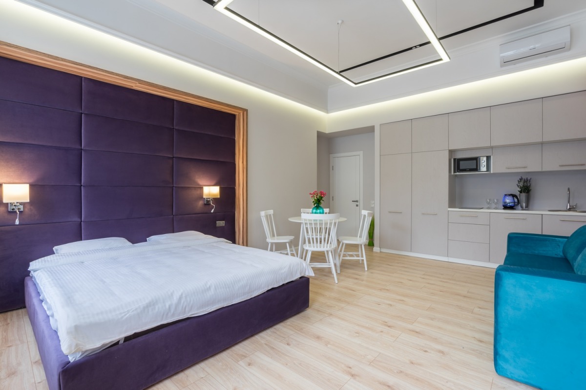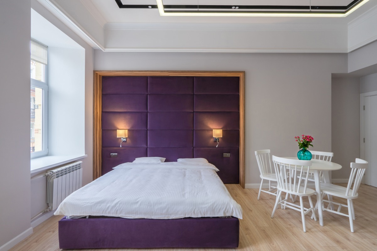 King This brand new and luxurious two bedroom apartment has been created for those who prefer total luxury with every single detail thought out for your convenience. It is also ideal for those who prefer privacy, want to relax from the busy city hustle and bustle and enjoy highest quality of comfort – all in the most central location of Kyiv.