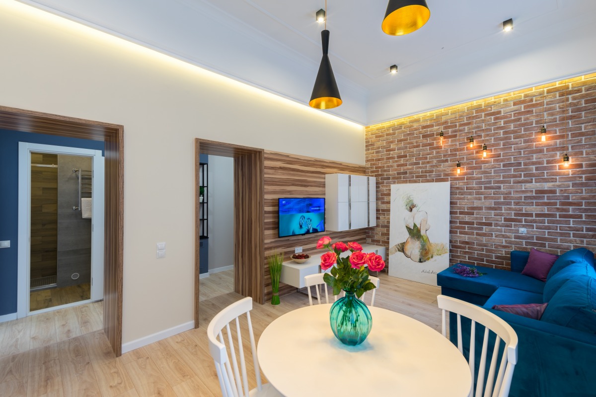 King This brand new and luxurious two bedroom apartment has been created for those who prefer total luxury with every single detail thought out for your convenience. It is also ideal for those who prefer privacy, want to relax from the busy city hustle and bustle and enjoy highest quality of comfort – all in the most central location of Kyiv.