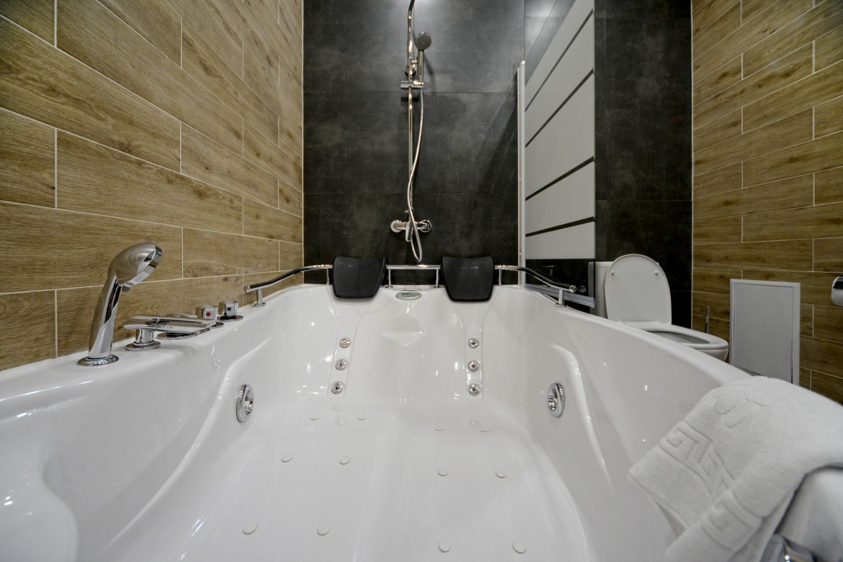 Апартаменти розміщені на другому поверсі будинку (вхідні двері в будинок з кодовим замком). Квартира обладнана та обставлена меблями за найвищими стандартами і в ній є все необхідне для комфортного проживання: простора вітальня зі шкіряним диваном (розкладається в ліжко), 32-дюймовий телевізор, кабельне телебачення (понад 100 каналів), високошвидкісний безпровідний інтернет, DVD програвач, робочий стіл для вашого комп'ютера, дві просторі спальні з двоспальними ліжками, місткі шафи в кожній кімнаті, ще один телевізор діагоналлю 25 дюймів в одній зі спалень. Також є балкон і кухня, обладнана всім необхідним для приготування їжі, з комфортною обідньою зоною. У ванній квартири є джакузі на двох, душ, пральна машина. У кімнатах є кондиціонери. Квартира простора і світла, площею близько 100 кв.м.