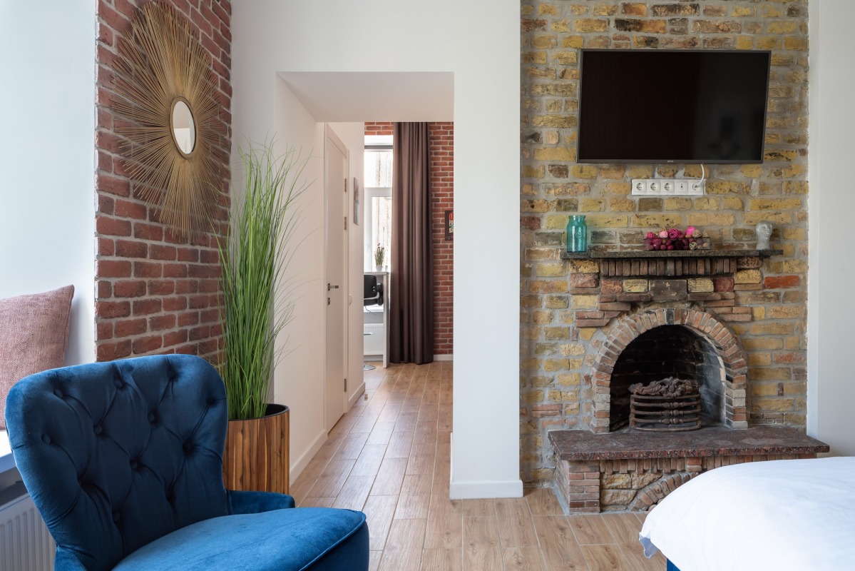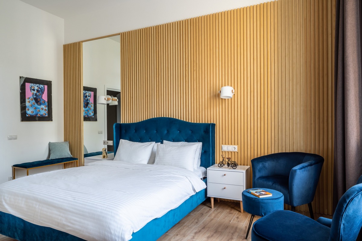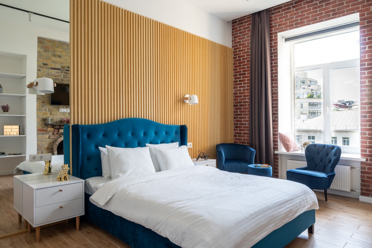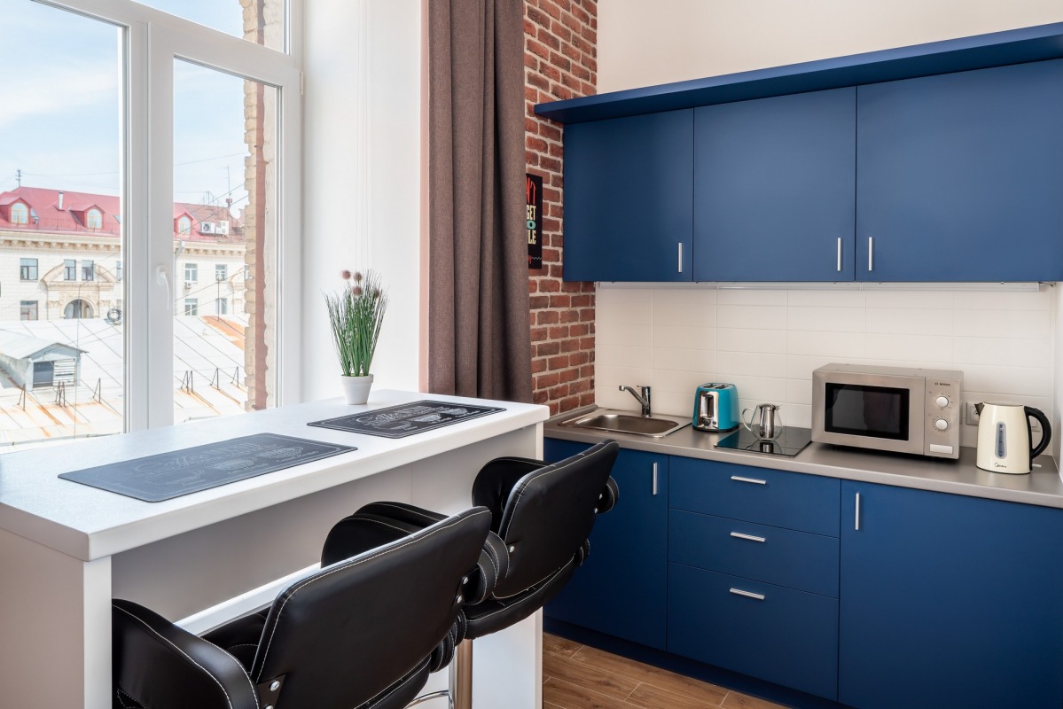 Розкішна студія ідеально вписується в стиль відпочинку та роботи сучасного вишуканого мандрівника. Цей блок має індивідуальний дизайн із підібраним декором та індивідуальним підходом. Він розташований на 5-му поверсі історичної будівлі, де є невеликий ліфт (ліфта достатньо для однієї людини з сумкою).