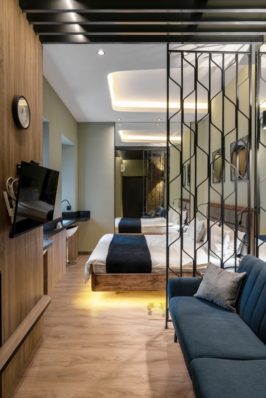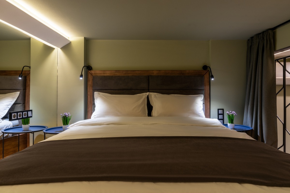 Квартира справжня двокімнатна (без вітальні), однак ви можете легко використовувати спальню як вітальню. У ньому є комфортабельні спальні місця для п'яти мешканців, два ліжка розміру "queen-size" і розкладний диван. Друга спальня розташована на легкодоступній мансарді, яку можна відгородити від решти квартири тінню. У квартирі є два кондиціонери, два РК-телевізори (можливості Smart TV, включаючи YouTube, Netflix тощо), найвища швидкість доступна через Wi-Fi та багато іншого. У квартирі є всі зручності готелю, такі як кодовий готельний сейф, обідня зона на чотири особи, мікрохвильова піч, пральна машина та багато іншого.