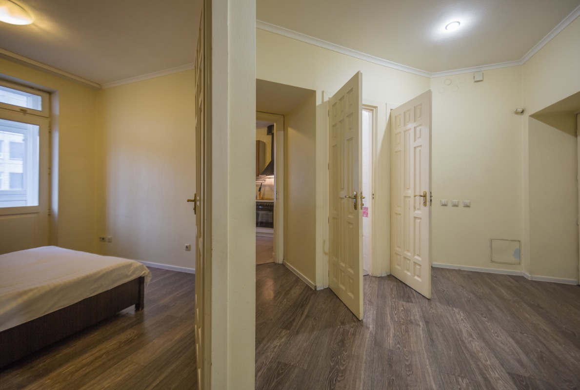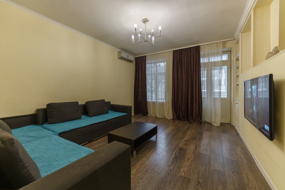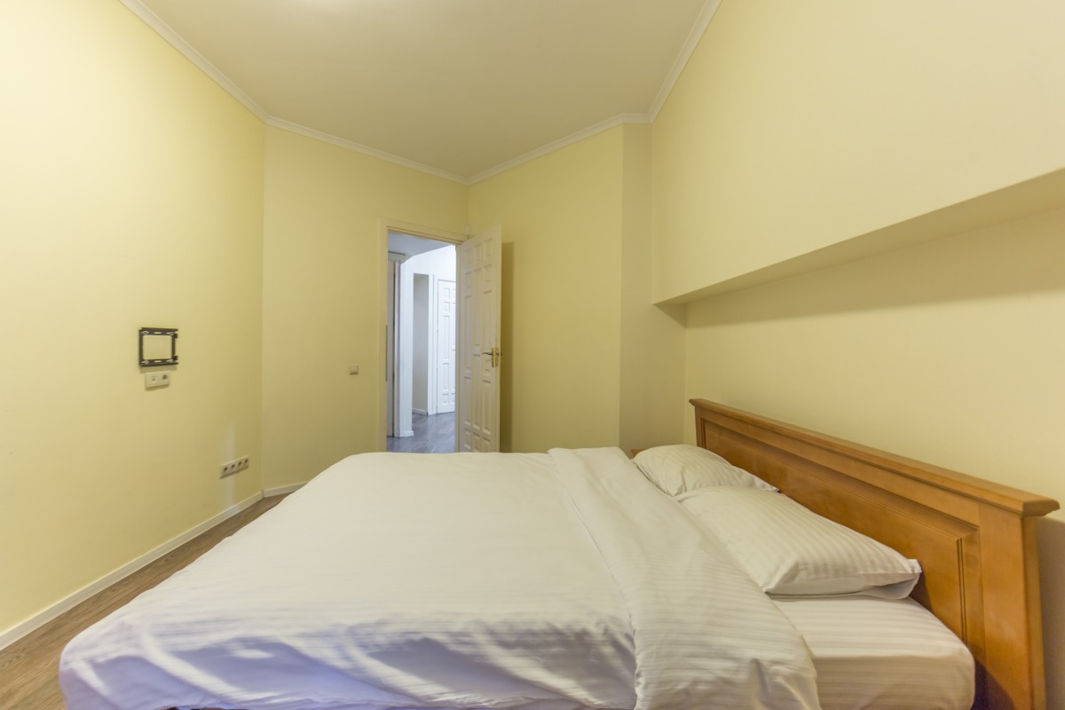 Квартира розташована на 3му поверху 7ми поверхового будинку з ліфтом. Загальна площа квартири більш ніж 100 квадратних метрів. Квартира вміщає в себе 3 спальні (всі 3 спальні розміщені окремо одна від одної). Вітальня вміщає в себе 42 дюймовий кабельний LCD телевізор (включє в себе також англомовні канали), 3 цілковито приватні спальні з двуспальними ліжками, велика шафа, кухня із столом для чотирьох, ванна кімната з пральною машиною, два балкони з чудовим видом на місто, чотири кондиціонери (окремий в кожній кімнаті) та багато іншого. Це чудова квартира для групи гостей з відмінним розташуанням в центрі міста.