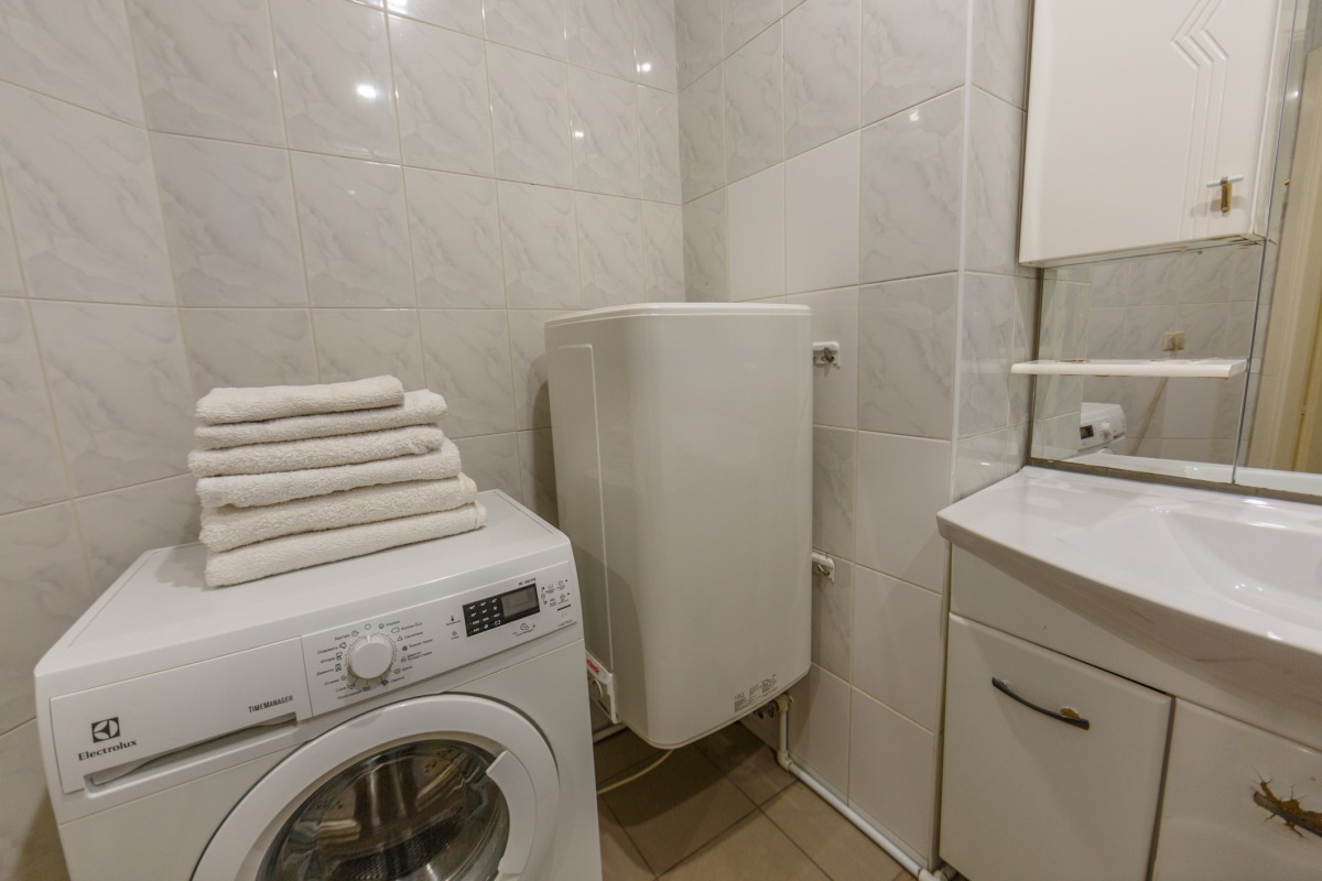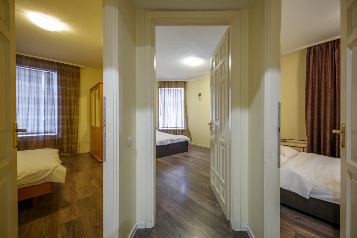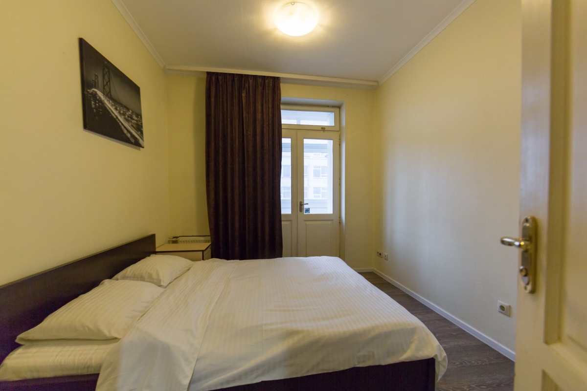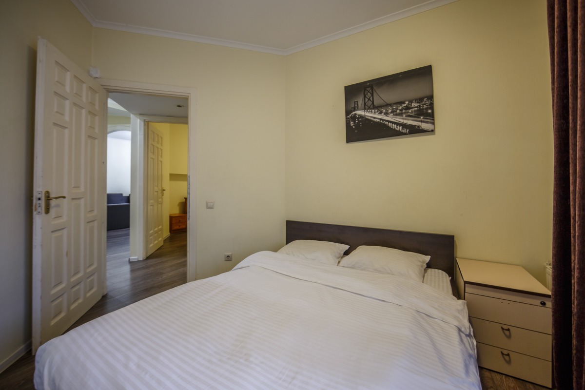 Квартира розташована на 3му поверху 7ми поверхового будинку з ліфтом. Загальна площа квартири більш ніж 100 квадратних метрів. Квартира вміщає в себе 3 спальні (всі 3 спальні розміщені окремо одна від одної). Вітальня вміщає в себе 42 дюймовий кабельний LCD телевізор (включє в себе також англомовні канали), 3 цілковито приватні спальні з двуспальними ліжками, велика шафа, кухня із столом для чотирьох, ванна кімната з пральною машиною, два балкони з чудовим видом на місто, чотири кондиціонери (окремий в кожній кімнаті) та багато іншого. Це чудова квартира для групи гостей з відмінним розташуанням в центрі міста.