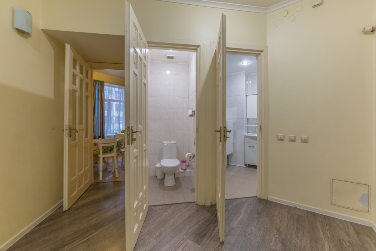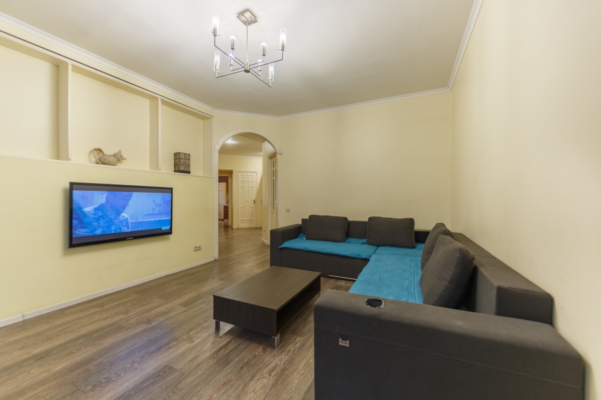Простора та комфортабельна чотирикімнатна квартира розташована в центральній частині Київа, де розташовані числені ресторани, кафе та нічні клуби. Головна вулиця Хрещатик знаходиться в 10-15 хв ходьби. Площа Льва Толстого розташована всього лише в 3-5 хв ходьби.
