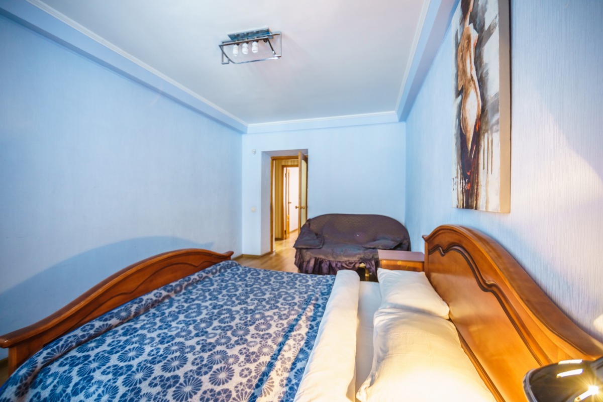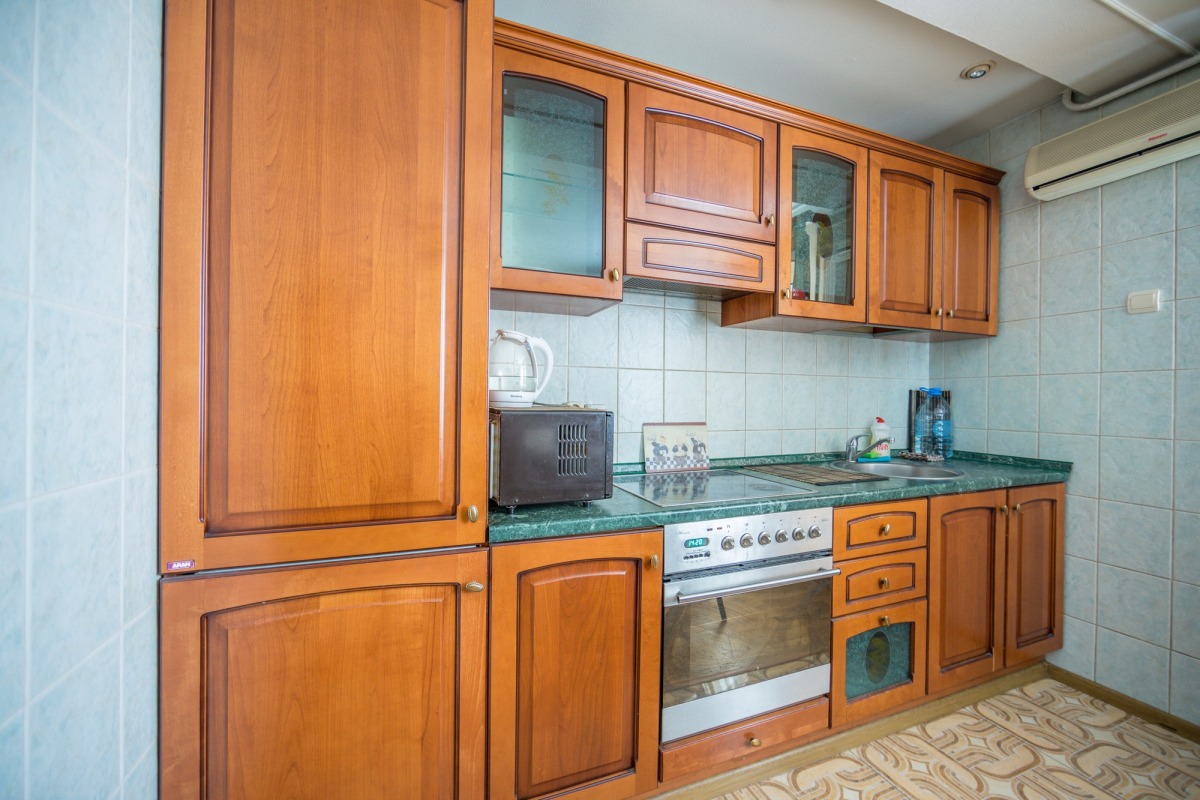 Розкладний 160×200 Простора трикімнатна квартира з новим ремонтом розташована в центрі Києва, в п'яти хвилинах ходьби від Бессарабської площі, яка є початком вулиці Хрещатик. Всі визначні місця центру столиці, а також десятки кращих ресторанів, кафе знаходяться поруч. Новий торговий центр "Гулівер" розташований безпосередньо навпроти будинку.